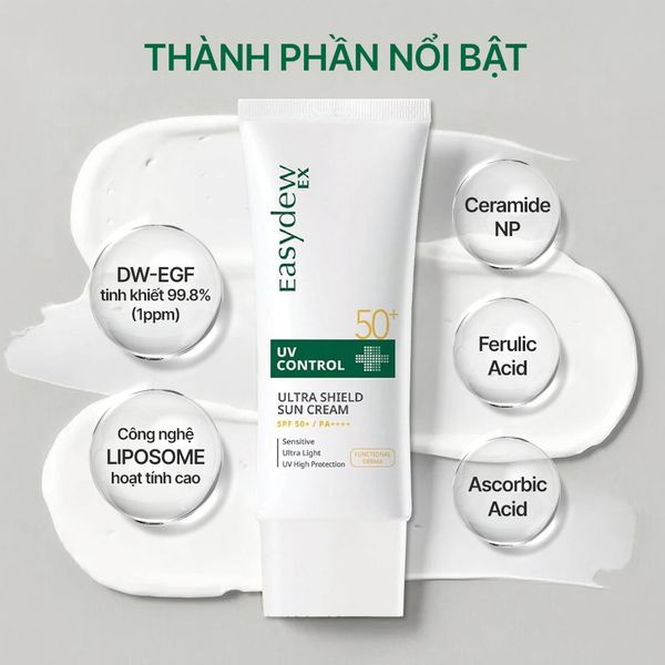 Kem Chống Nắng Mỏng Nhẹ, Thấm Nhanh Hỗ Trợ Phục Hồi Da Tổn Thương Easydew Ex UV Control Ultra Shield Sun Cream SPF50+ 50ml